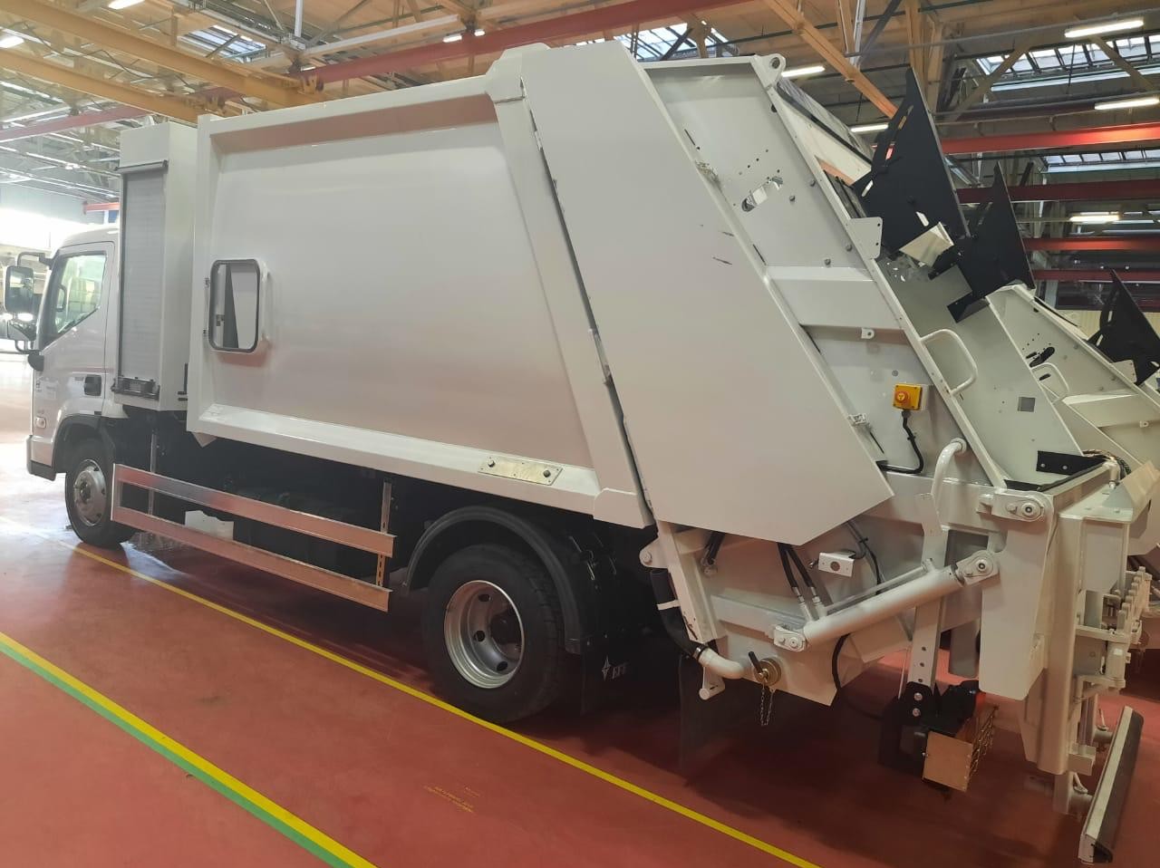 В состав специального оборудования входят: кузов с задней крышкой, уплотняющий механизм, выталкивающая плита, манипулятор, гидравлическая и электрическая системы. Загрузка отходов в пресс-камеру производится манипулятором. Уплотняющий механизм - это плита ковшового типа. Размещается в пресс-камере, совмещенной с загрузочным бункером. Выталкивающая плита производит выгрузку мусора из кузова. При загрузке кузова выталкивающая плита создает противодавление на мусор, обеспечивая его эффективное уплотнение. Пресс-камера выполнена из износостойкого материала HARDOX